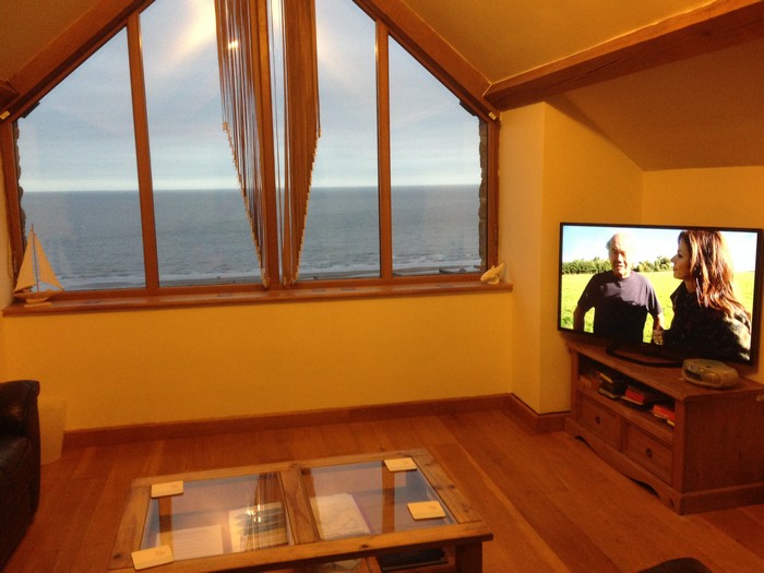 Newly converted upside-down barn conversion fitted out to the Visit Wales (Welsh Tourist Board) 5 star standards with the bedrooms and bathroom on the ground floor and the kitchen and lounge upstair,s to take advantage of the magnificent and uninterupted beach and sea views from the lounge picture window.